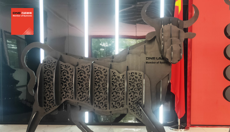 “瑞士牛”由百超迪能自主研发的激光切割机切割拼接而成。在激光工艺上,主要体现百超迪能的核心光学技术与激光切割技术。
